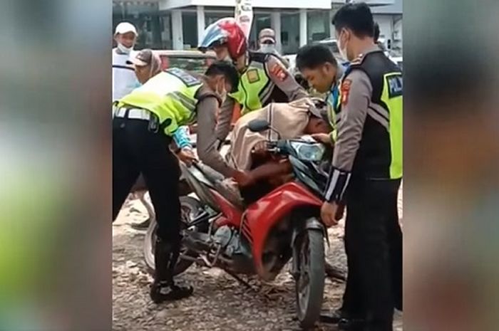 Ia pun diberhentikan oleh petugas dan motor yang dikendarainya akan diamankan polisi.
