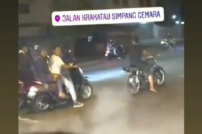 Menurut sang pengunggah, peristiwa ini terjadi di Jalan Krakatau Simpang Cemara, Medan, Sumatera Utara.