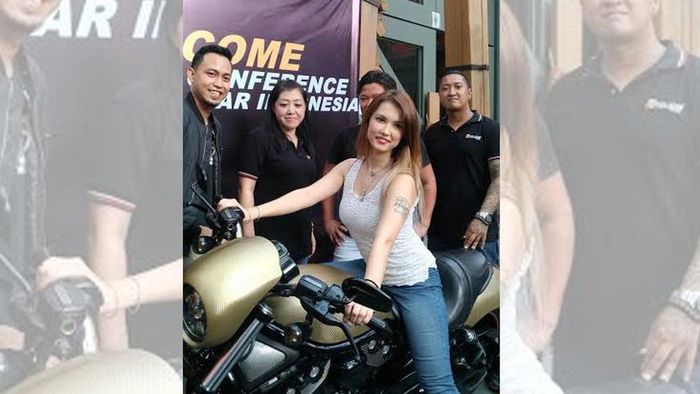 Sebagai model, Maria pun tak lupa berpose cantik diatas motor.
