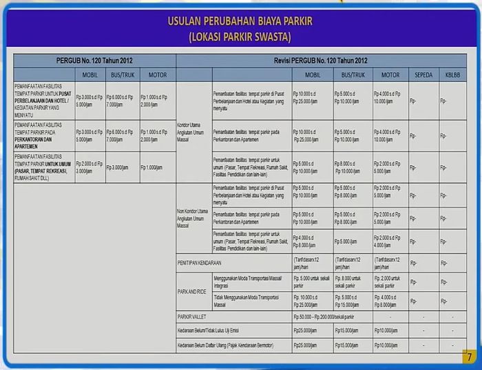 "Bila lokasi parkir berada di jalur busway, MRT atau LRT maka tarif parkir akan lebih mahal dari lokasi parkir yang tidak ada jalur transportasi umumnya" ujar Dhani Grahutama, Kasubag Tata Usaha UP Perparkiran Dishub DKI Jakarta pada focus group discussion (FGD) oleh Pemprov DKI Jakarta pada hari Rabu (16/06/2021).