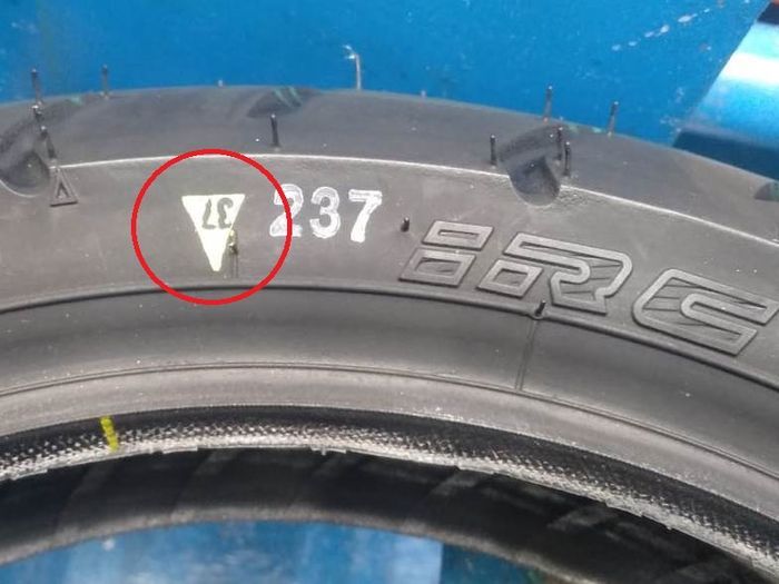 "Lambang segitiga ini menyatakan titik teringan pada ban. Sebagai titik penempatan pentil," jelas Dodi.