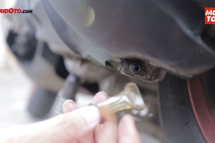 Biasa lubang dimotor ditutup dengan baut tapi tidak untuk lubang di bawah CVT ini yang menggunakan slang bening.