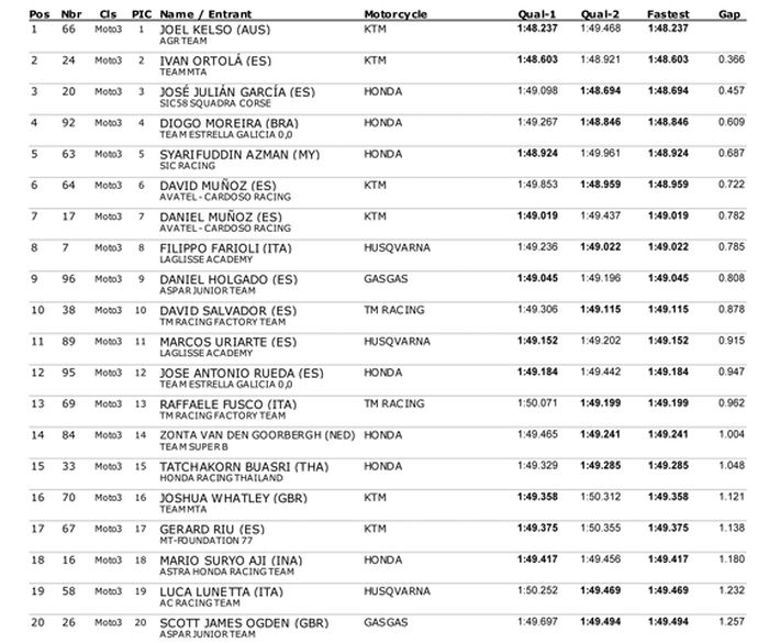 Lebih jelasnya lagi, inilah hasil kualifikasi FIM CEV Repsol Moto3 Portugal 2021;