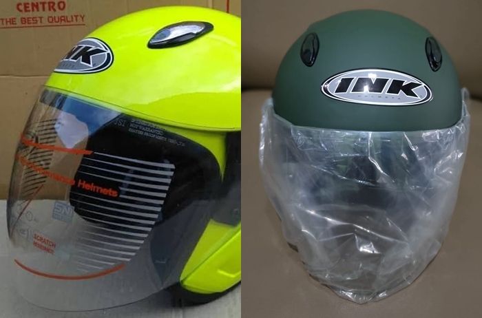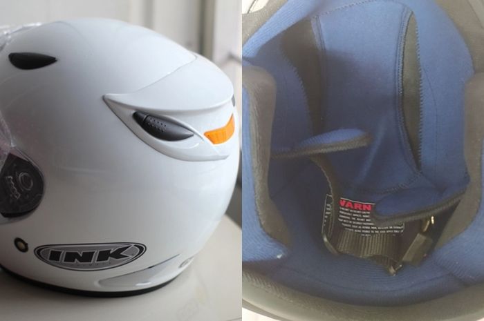 Rupanya helm merek lokal juga dibuat palsunya, seperti helm half face INK Centro yang populer.