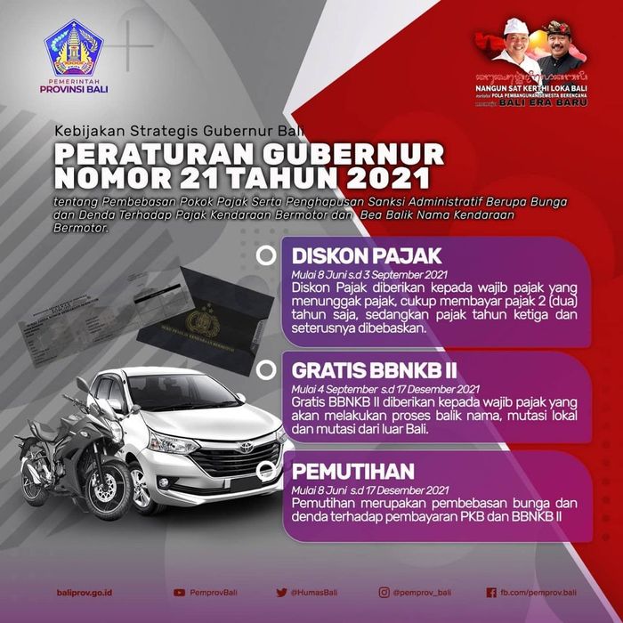 Pemrpov Bali juga menghadirkan program pemutihan pajak kendaraan di 2021 ini.
