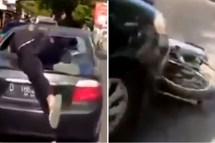 Gridmotor.id - Bandung geger, ada pemotor mendadak disenggol mobil sampai terseret, sopir sempat tancap gas.