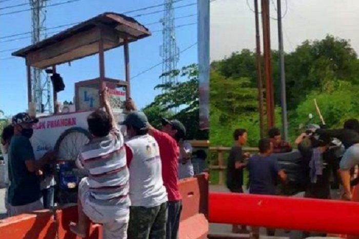 GridMotor.id - Pemotor dan warga Tegal nekat angkat motor dan gerobak cilok lewati beton pembatas atau barikade PPKM Darurat.