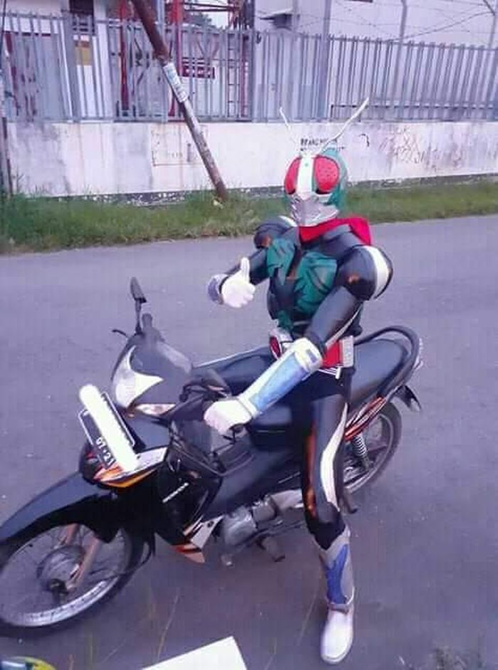 Bedanya saat beraksi, Satria Baja Hitam selalu mengendarai motor.