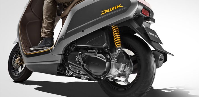 Honda Dunk menggendong mesin 50 cc SOHC 4-tak tanpa radiator.