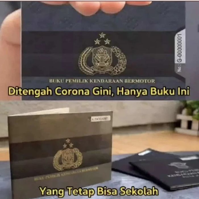 "Ditengah Corona gini, hanya buku ini yang tetap bisa sekolah," tulis pembuat meme itu.