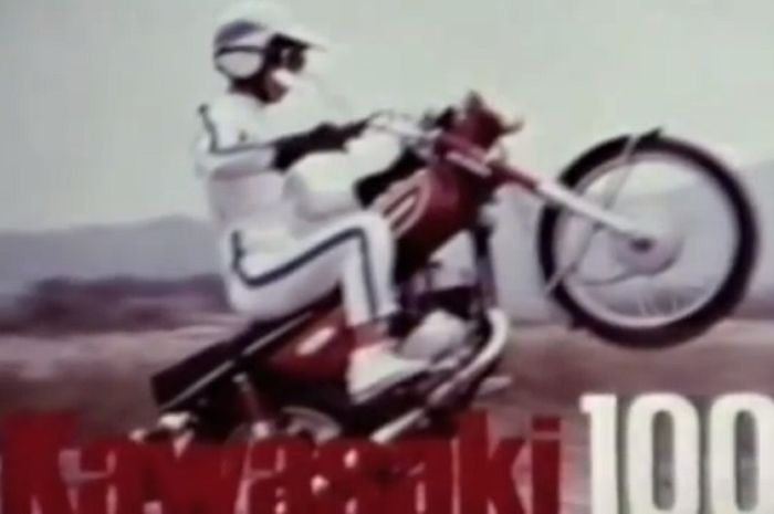 Pas banget, ada iklan Kawasaki yang memunculkan KH 100 dan motor jadul Kawasaki lainnya.