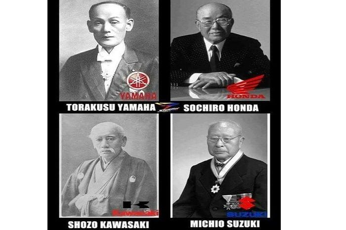 Adapun beberapa nama seperti Torakusu Yamaha, Sochiro Honda, Shozo Kawasaki, dan Michio Suzuki.