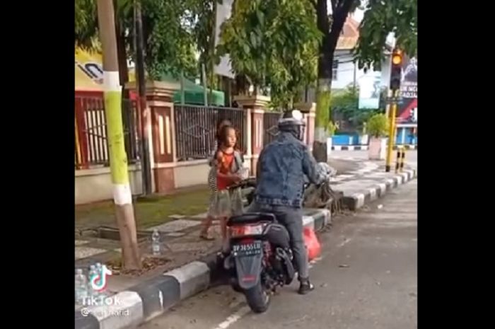 Bagaimana enggak, si pemotor langsung berhenti di depan dua anak jalanan yang sedang mengais nafkah.