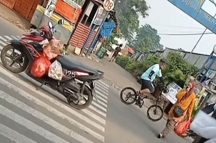 Beredar sebuah video yang memperlihatkan seorang emak-emak memarkirkan motornya di tengah jalan raya.