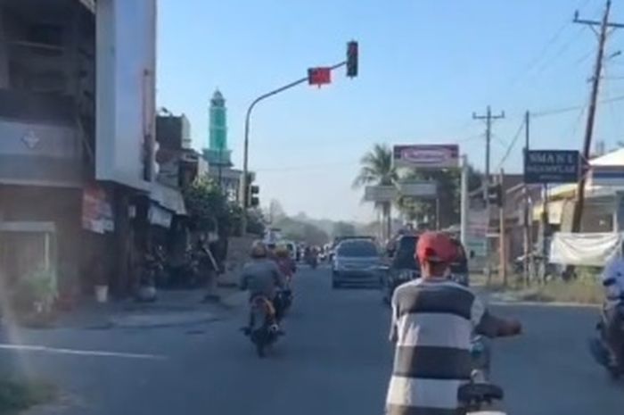 Dimana terlihat sejumlah pemotor nekat menerobos rambu lalu lintas.