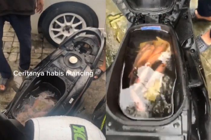 GridMotor.id - Koplak, bagasi Honda BeAT diisi ikan hidup oleh pemotor remaja ini, katanya habis pulang mancing.