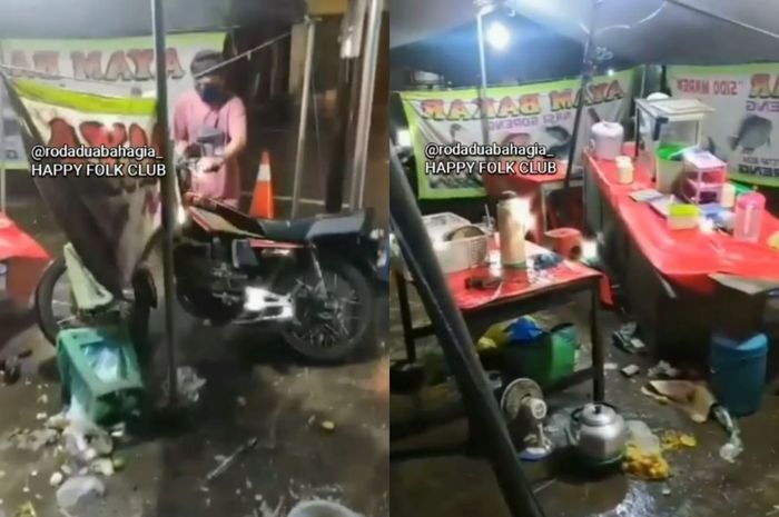 GridMotor.id - Brakk, Yamaha RX-King 'Sang raja jalanan' tabrak warung pecel lele, dagangan buyar semua.