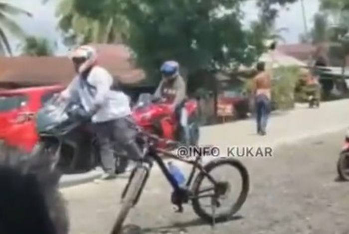 Pemotor tersebut disuruh turun dari motor masing-masing.