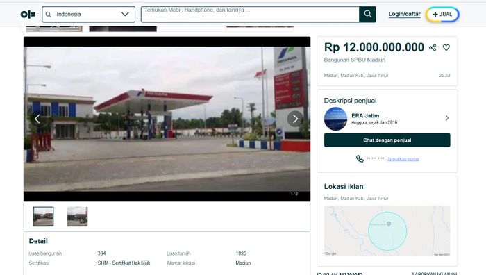 Mengintip dari situs jual beli online, harga SPBU bekas termurah sebesar Rp 12 Miliar.