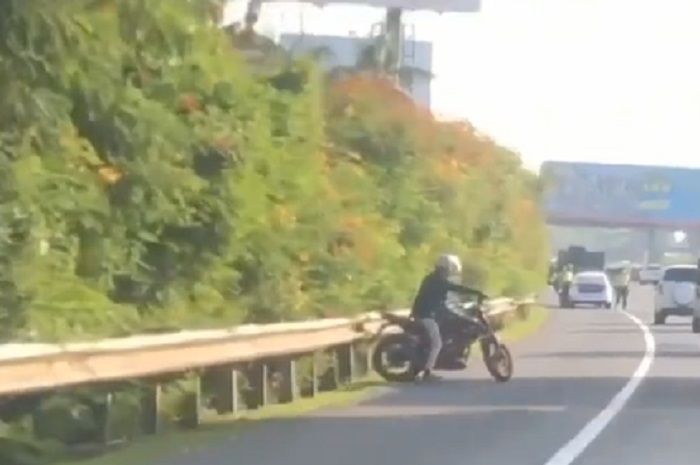 GridMotor.id - Kejadian lagi motor masuk jalan tol Jakarta-Merak, mau muter balik kabur dari polisi tapi ragu.
