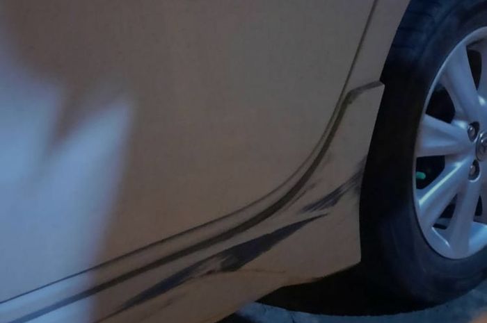 Korban mengatakan mobilnya telah diserempet oleh pemotor, namun pemotornya tidak terima.