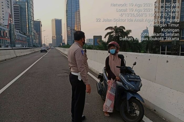 Petugas menyuruh pemotor perempuan tersebut untuk balik arah.