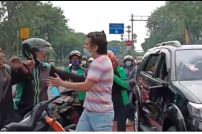 Bahkan ada salah satu driver ojol hampir menghajar pemotor yang terlibat cek cok lantaran tidak mau dipisah.