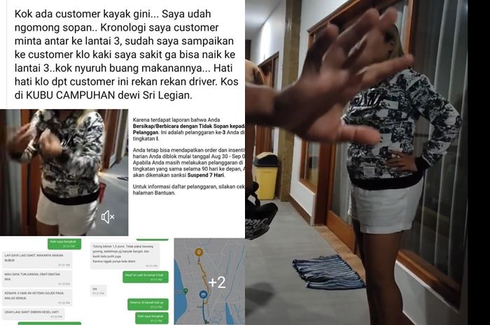 "Sudah saya sampaikan ke customer klo kaki saya sakit ga bisa naik ke lantai 3..kok nyuruh buang makanannya.." lanjut Dana AGha.
