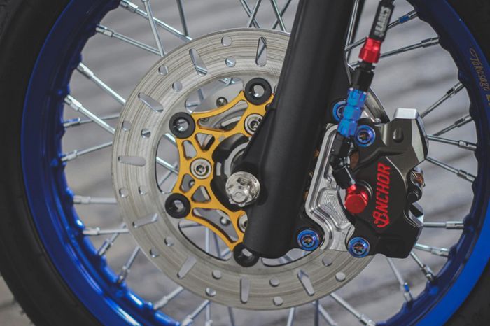 Yakni dengan memilih kaliper rem Anchor 2P untuk menjepit cakram floating 128 Racing.