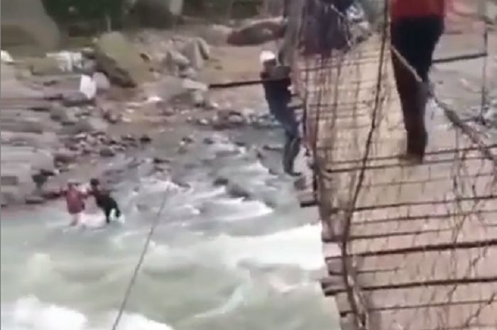 GridMotor.id - Mencekam, detik-detik pemotor terjatuh dari jembatan gantung di Banten, ibu dan anak masuk ke sungai.