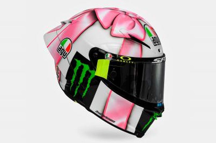 Ternyata, pembalap Petronas Yamaha SRT, Valentino Rossi pamer helm baru.