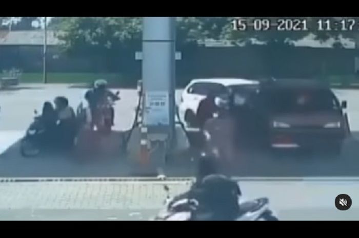 Video tersebut diambil dari CCTV di sebuah pom bensin atau SPBU.
