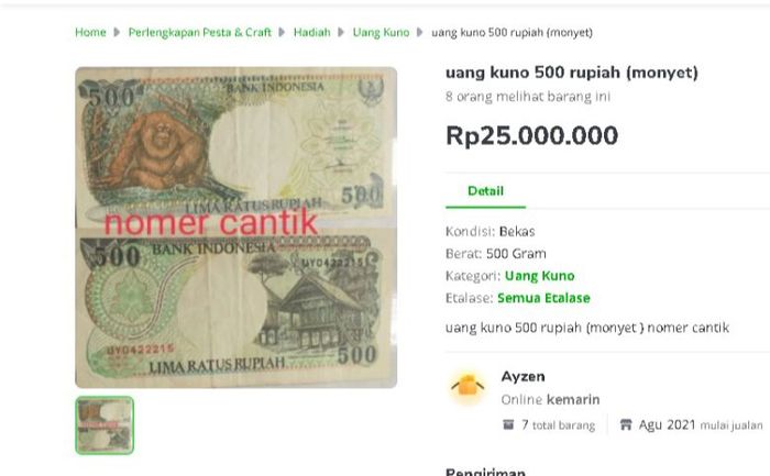 Tim Gridmotor.id coba menyelidiki berapa harga tukar untuk uang kertas 500 lawas tersebut di toko online.