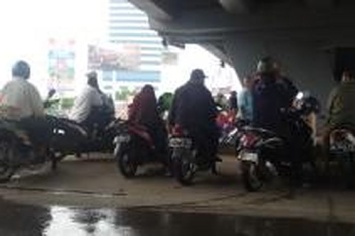 Salah tempat yang sering dijadikan tempat teduh oleh para pemotor adalah di bawah flyover.