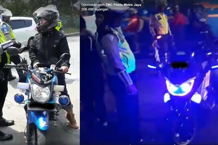 Dalam video tersebut, tampak petugas kepolisian sedang menindak pemotor yang memakai strobo dan sirine.