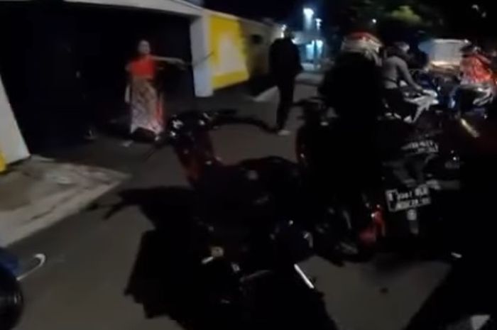 Terlihat sekelompok bikers yang sedang night ride menggunakan knalpot bising.