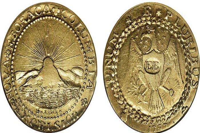 Sesuai namanya, uang koin Brasher Doubloon EB on Breast memiliki tulisan EB yang tercetak di dada elang.