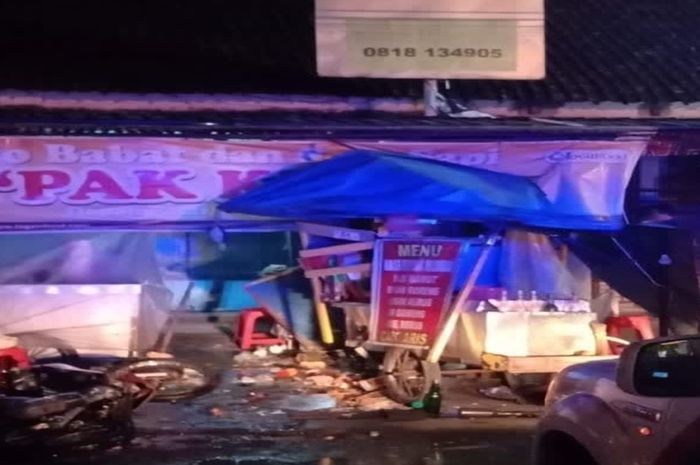 Gridmotor.id - Tragis gara-gara main HP, warung gerobak di pinggir jalan hancur berantakan.