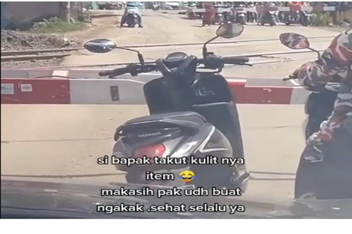 Gridmotor.id - Viral video aksi pemotor yang menunggu kereta api melintas.