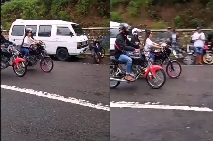 Parahnya lagi cewek tersebut naik motor tanpa pakai helm.