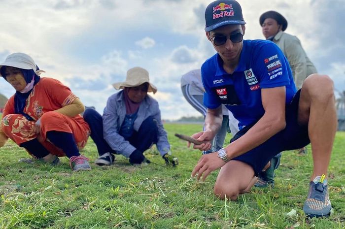 Ia diketahui malah membantu petani ngarit di sekitaran Sirkuit Mandalika.