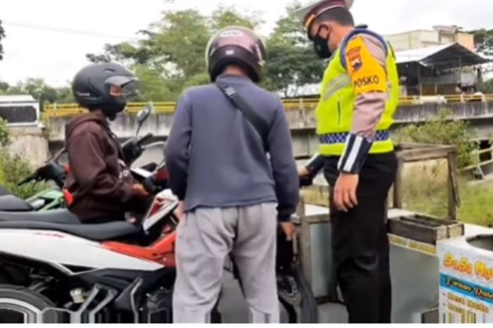 Ditengah jalan, pemotor tersebut dicegat oleh Polisi yang tengah lakukan razia.