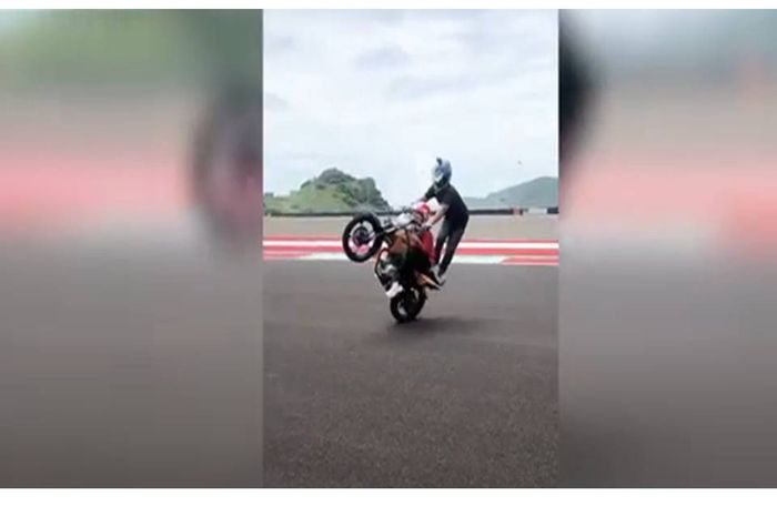 Gridmotor.id - Jelang Tes MotoGP Indonesia 2022, Sirkuit Mandalika malah dipakai beberapa biker untuk pamer aksi freestyle.