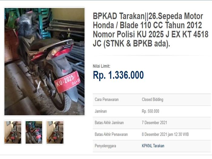 Di situs tersebut tidak hanya motor Honda Blade saja yang dilelang.