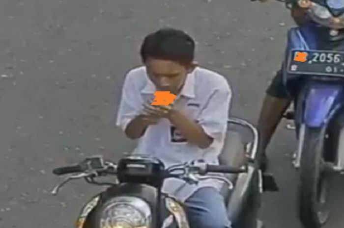 Pelajar tersebut juga terlihat jelas tidak memakai helm.