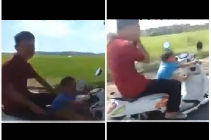 Bahkan dengan beraninya, si balita tersebut membonceng seorang pria dewasa.