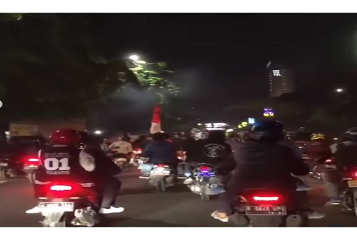 Gridmotor.id - Supporter Indonesia konvoi di jalan sebagai reaksi euforia kemenangan Timnas Garudan melawan Malaysia di ajang Piala AFF 2020.