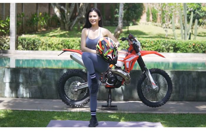 Nah artis Maria Vania punya tips gerakan-gerakan sehat sebelum riding.