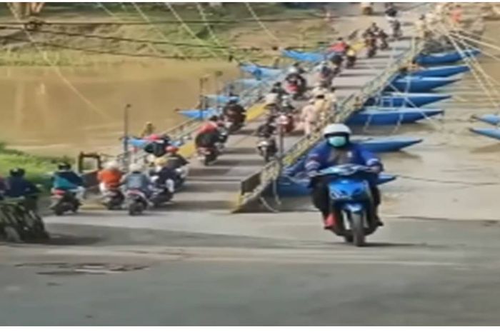 Gridmotor.id - Viral sebuah video yang memperlihatkan adanya jembatan perahu yang dilewati oleh beberapa pemotor.