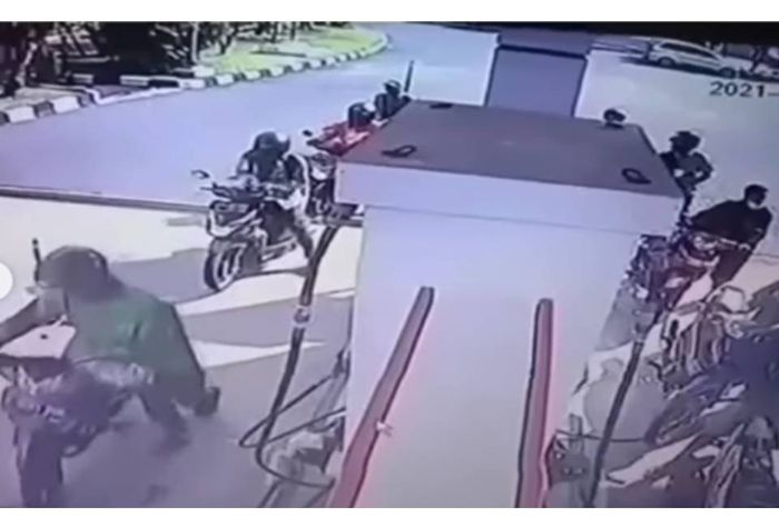 Peristiwa pencurian tersebut terekam dalam kamera CCTV SPBU.
